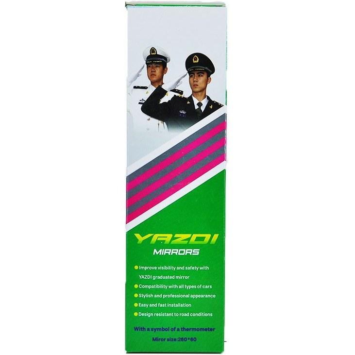 مزیت آن ایجاد زاویه دید وسیعتر به نسبت آینه فابریک و داشتن دماسنج آنالوگ است، جنس بدنه پلاستیک باکیفیت ABS و خود آینه شفاف و بدون موج یا خط و خش می باشد.