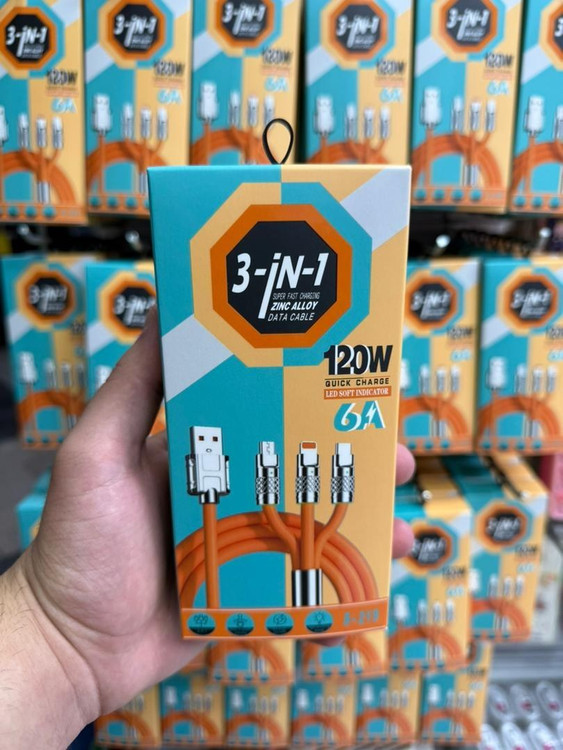 کابل شارژ سیلیکونی 3 کاره 120 وات 6 آمپر