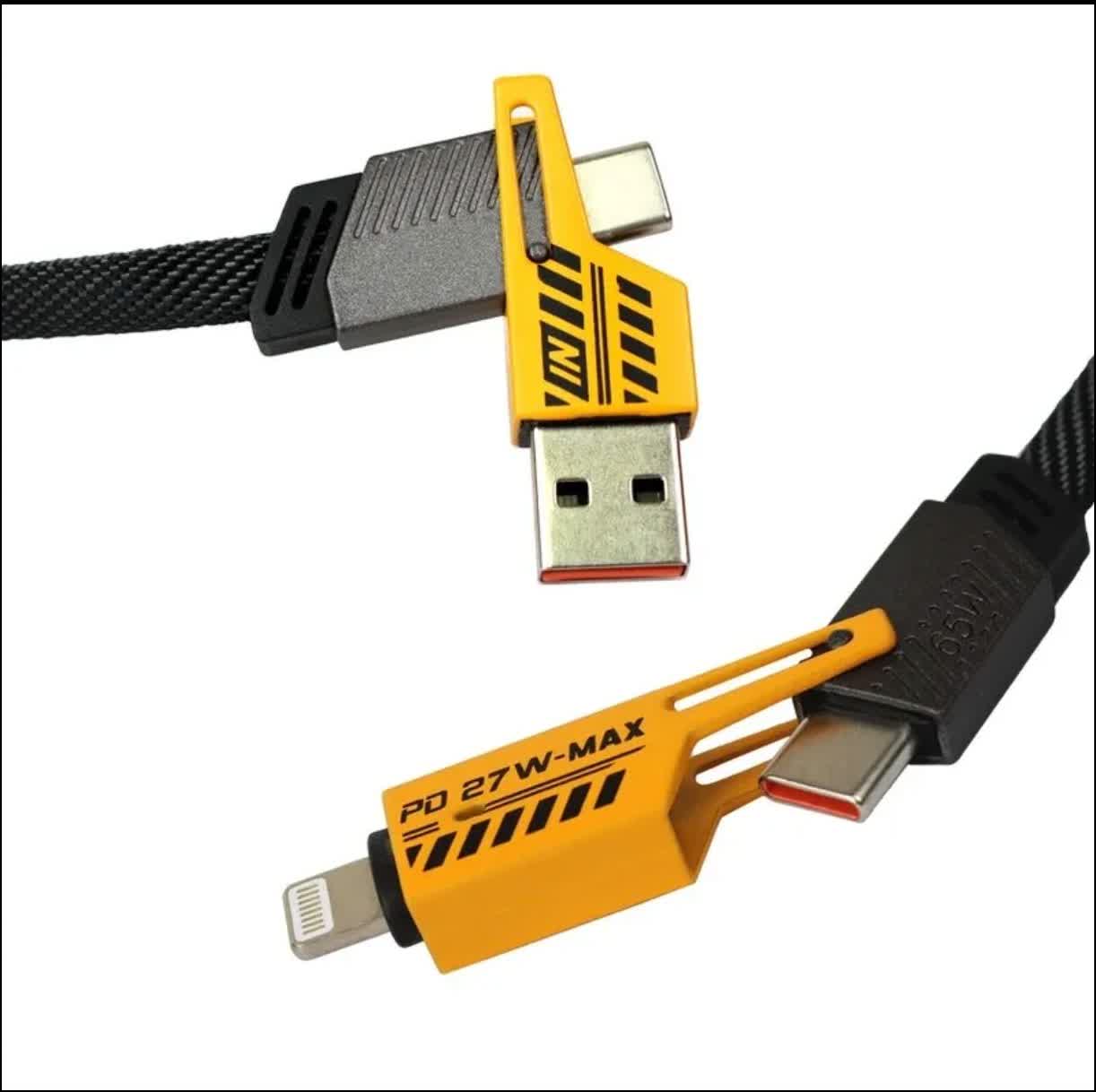 کابل شارژ چهار کاره Ako با هدف پایان بخشیدن به درهم ریختگی سیم ها طراحی شده است این کابل ،هوشمند راه حلی جامع برای تمام نیازهای شارژ و انتقال داده ارائه میدهد و با چهار اتصال دهنده مختلف شامل درگاه USB-C برای گوشیهای مدرن و لپتاپها درگاه Lightning مخصوص آیفون و آیید و درگاه USB-A استاندارد برای اتصال به شارژر و پاوربانک همراهی