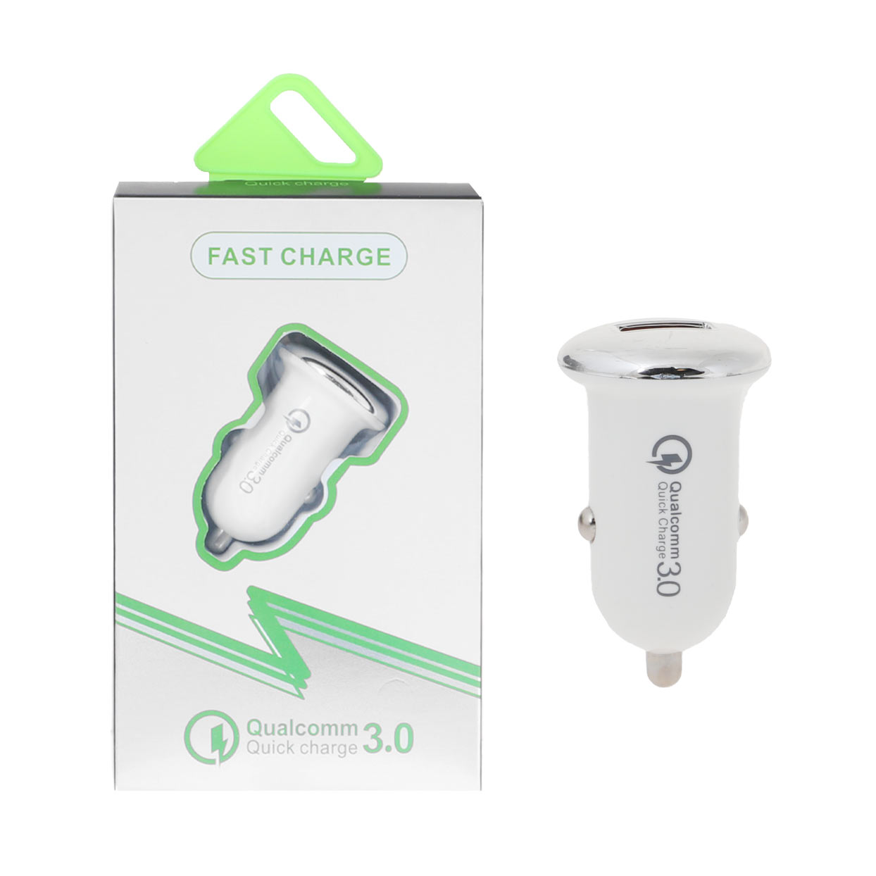 شارژر فندکی تک پورت فست QC3 با قابلیت شارژ سریع و ایمن برای گوشیها و دستگاههای الکترونیکی، مجهز به تکنولوژی Quick Charge 3.0 است و در فروشگاه توکیو اسپورت در دسترس است.